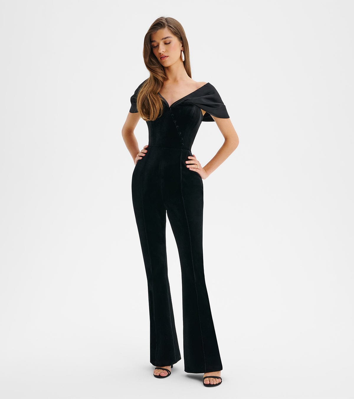 ANTONIA Velvet Satin Mix Bardot Jumpsuit In BlackANTONIA Velvet Satin Mix Bardot Jumpsuit In Black