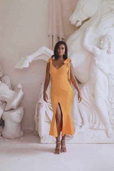 KAMILA Tie Strap Micro Button Midi Dress in Orange